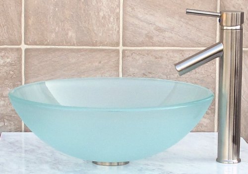Compare Bathroom frosted Glass Vessel Sink Brushed nickel Faucet Combo brushed nickel Pop Up Drain Mounting Ring R12FN1